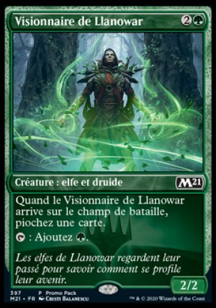 Le saviez-vous ? Llanowar Visionary est inspiré des cartes Llanowar Elves et Elvish Visionary en cumulant leurs noms, leurs coûts de mana, leurs effets et leurs forces et endurances.