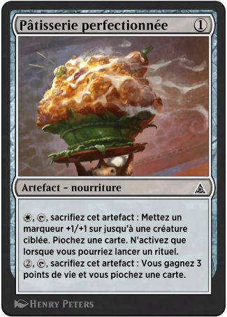 ,  , sacrifiez cet artefact : Mettez un marqueur +1/+1 sur jusqu'à une créature ciblée. Piochez une carte. N'activez que lorsque vous pourriez lancer un rituel.